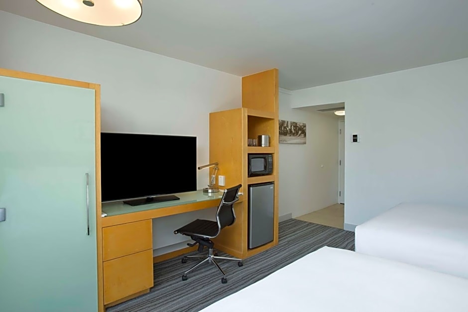 298 sq. ft. WiFi available, 48-inch HDTV, and alarm clock as well as hairdryer, microwave, mini-fridge, in-room safe, ergonomic desk chair, cordless phone and coffeemaker with local coffee flavors.